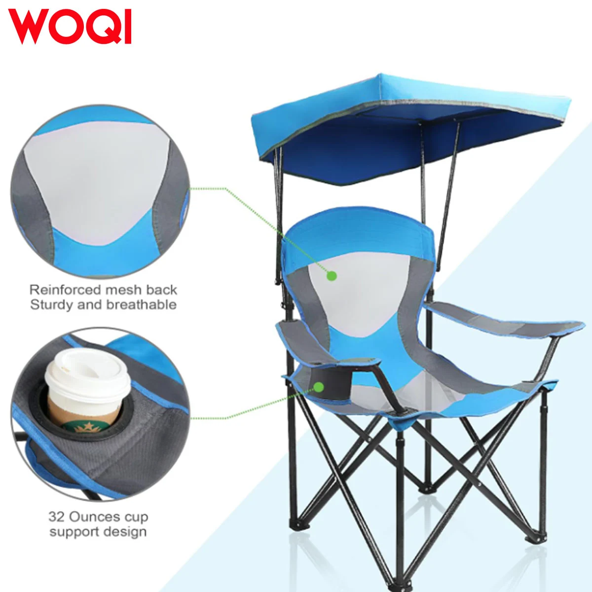 WOQI Heavy Duty Canopy Folding Chair Sunshade Hiking Travel Chair with Cup Holder