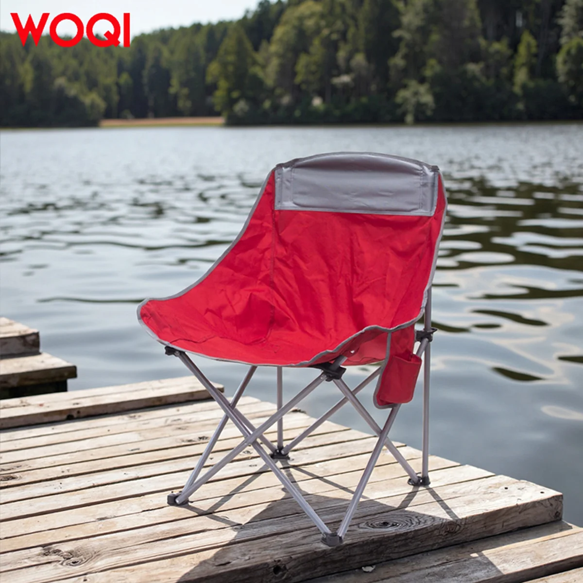 WOQI Outdoor Folding Camping Bucket Moon Chair with Side Storage Pocket
