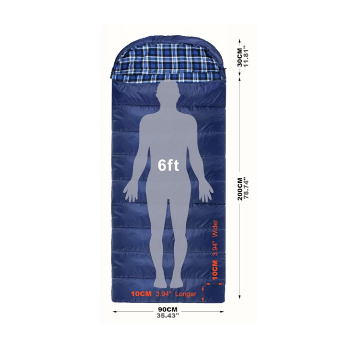 More Spacious: Sleeping bag has dimensions of (78.74+11.81)*35.43 inches and a packed size of 16.53*13.38*5.51 inches. The sleeping bag features an enlarged and widened design, providing ample space that suits various body types, allowing freedom of movement and ensuring comfort.