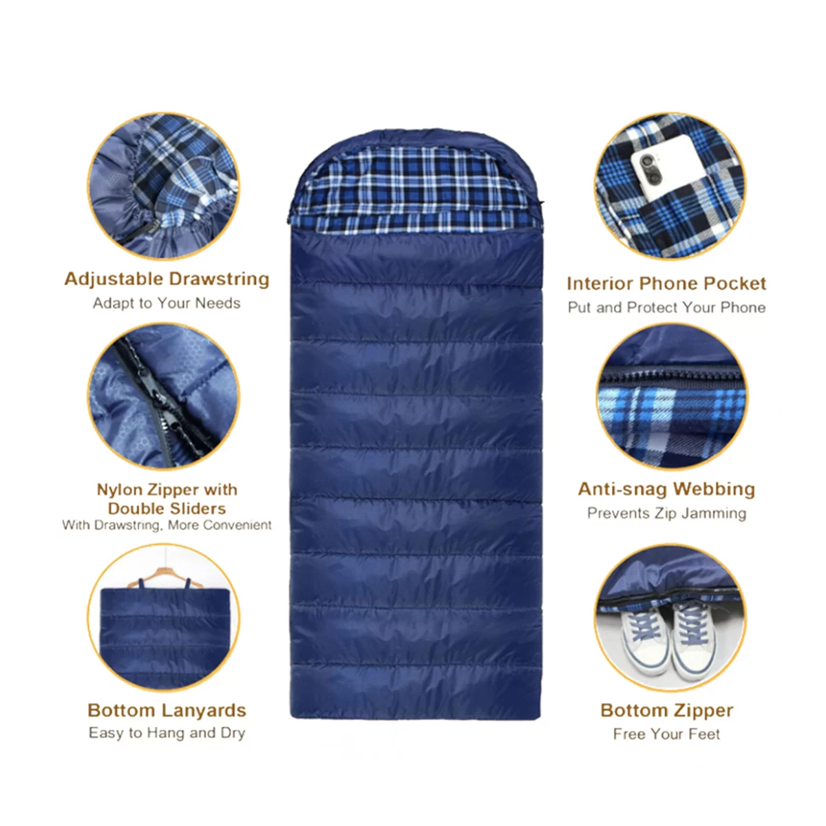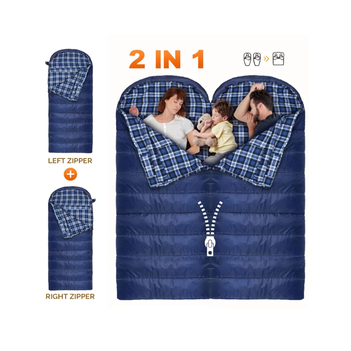 Versatile Use: The adult sleeping bag can be zipped together with another sleeping bag (left or right) to form a double sleeping bag. It can also be fully opened and used as a mat, providing warmth and comfort for various scenarios. The resin zipper, thoroughly tested, ensures a smooth experience, and the zippered bottom allows for foot ventilation.