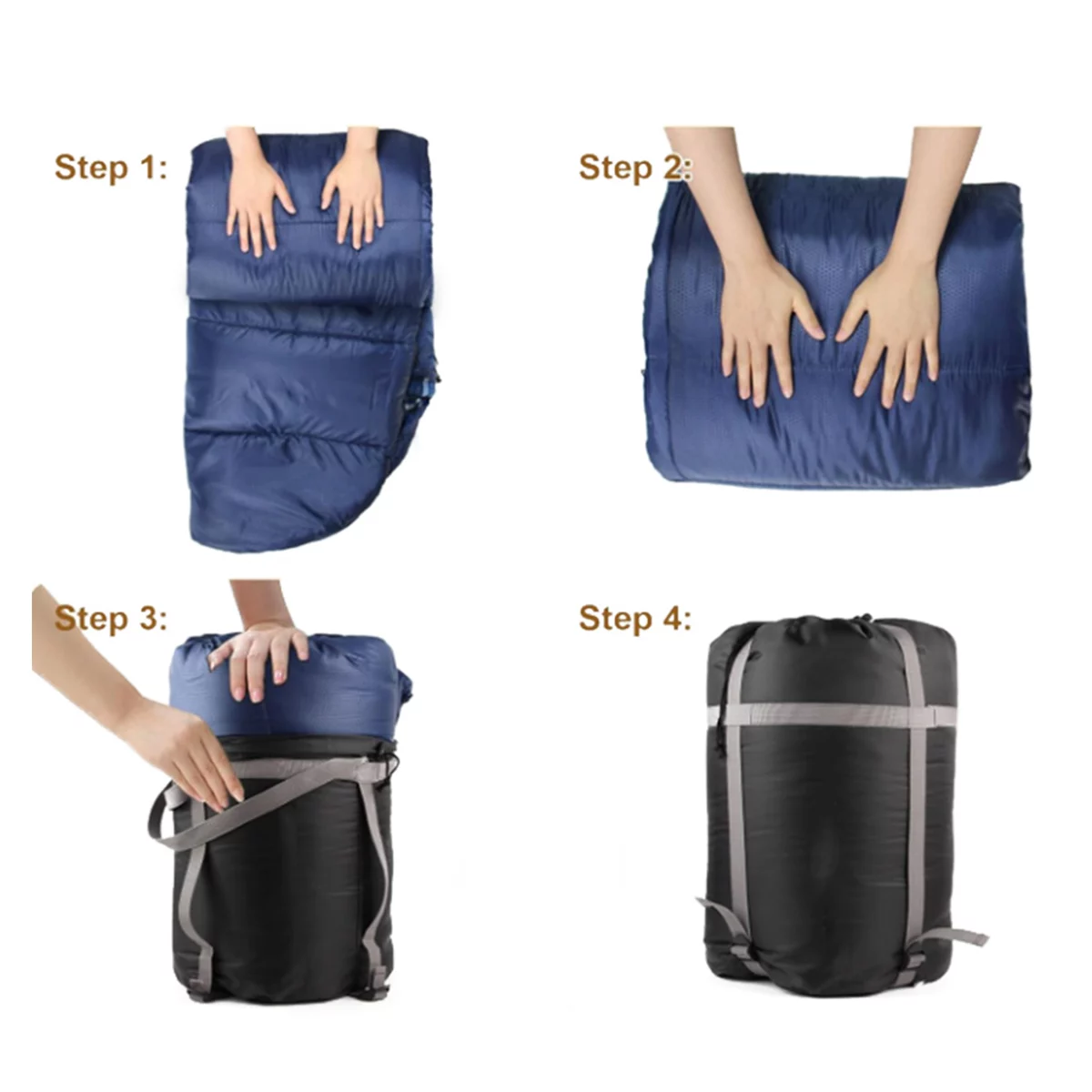 Multiple Scenes: The sleeping bag comes with a compression bag, allowing easy rolling and convenient portability. Whether it’s camping, traveling, outdoor adventures, or indoor overnight stays, the sleeping bag provides a comfortable sleeping environment. It also offers additional insulation in lower temperatures or harsh environments, protecting users from cold or damp conditions.