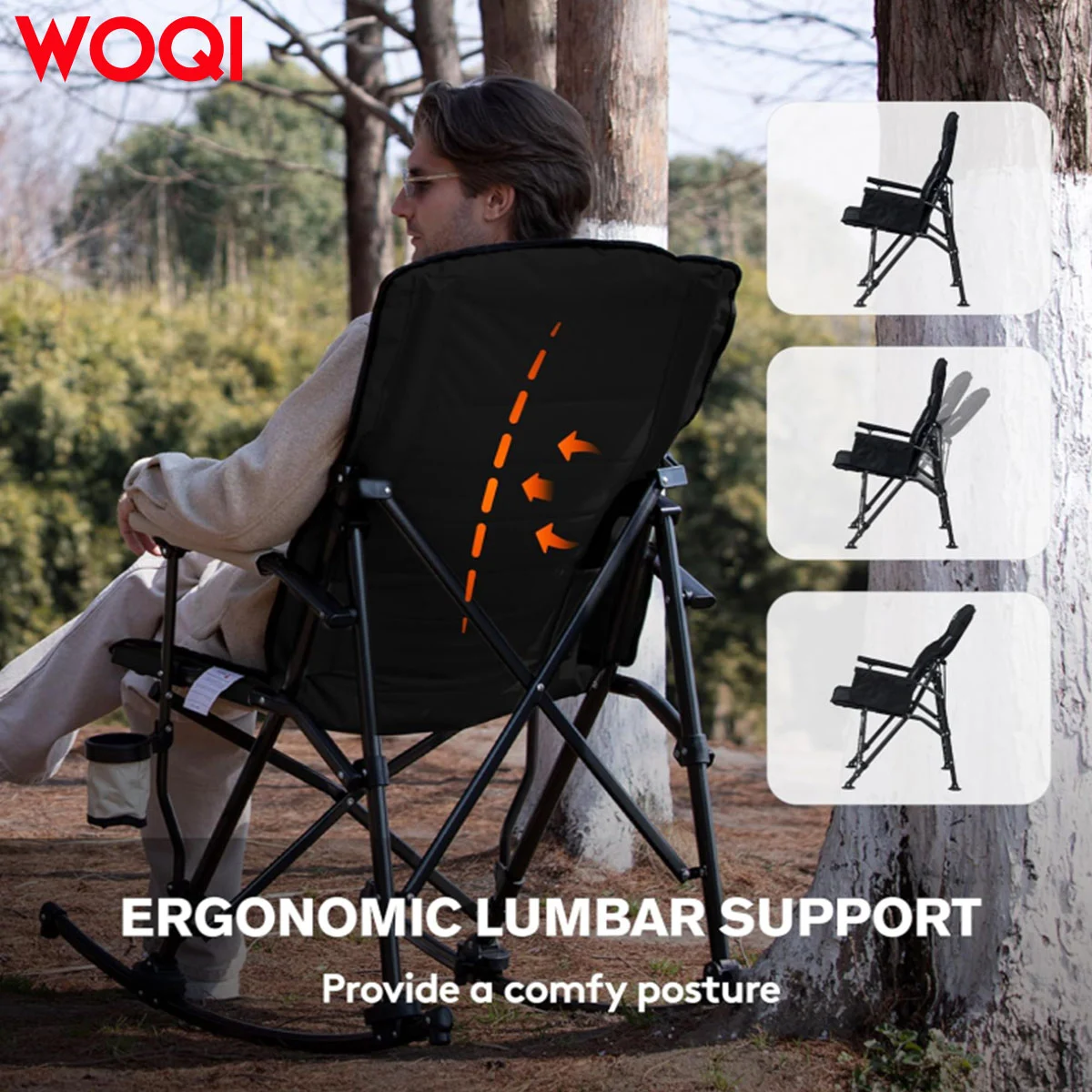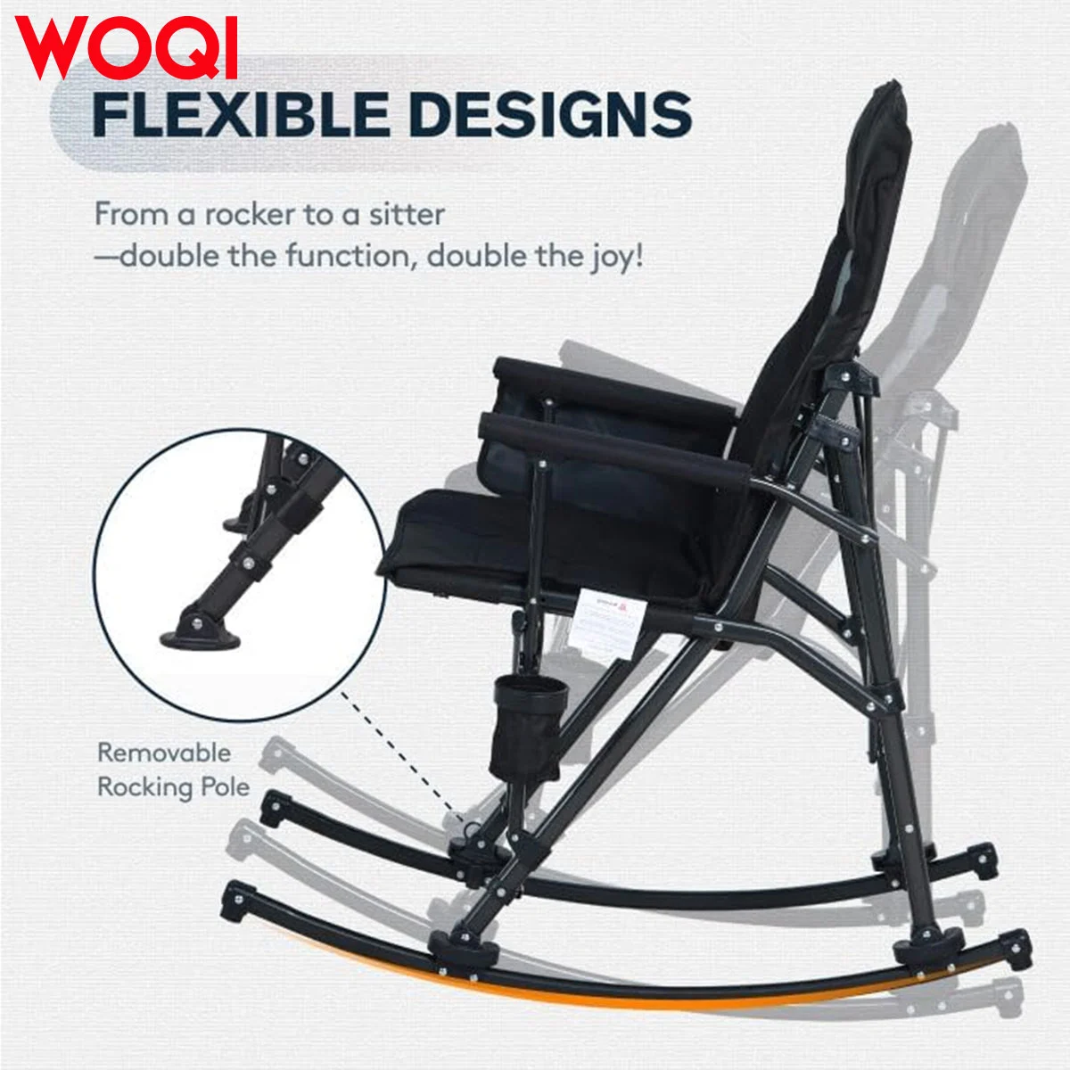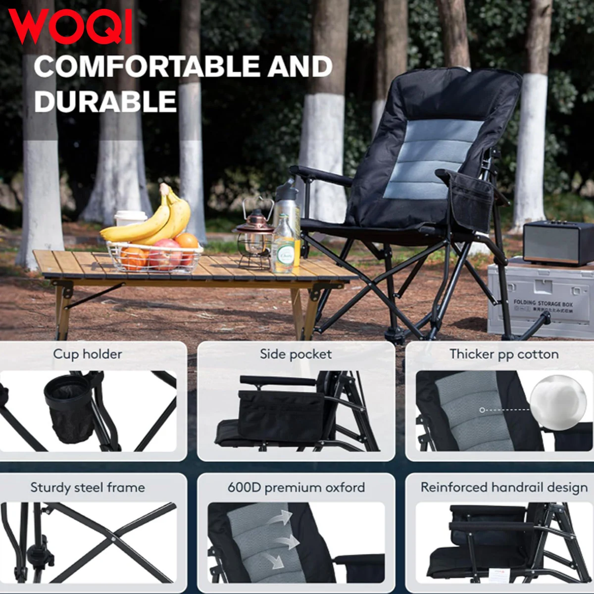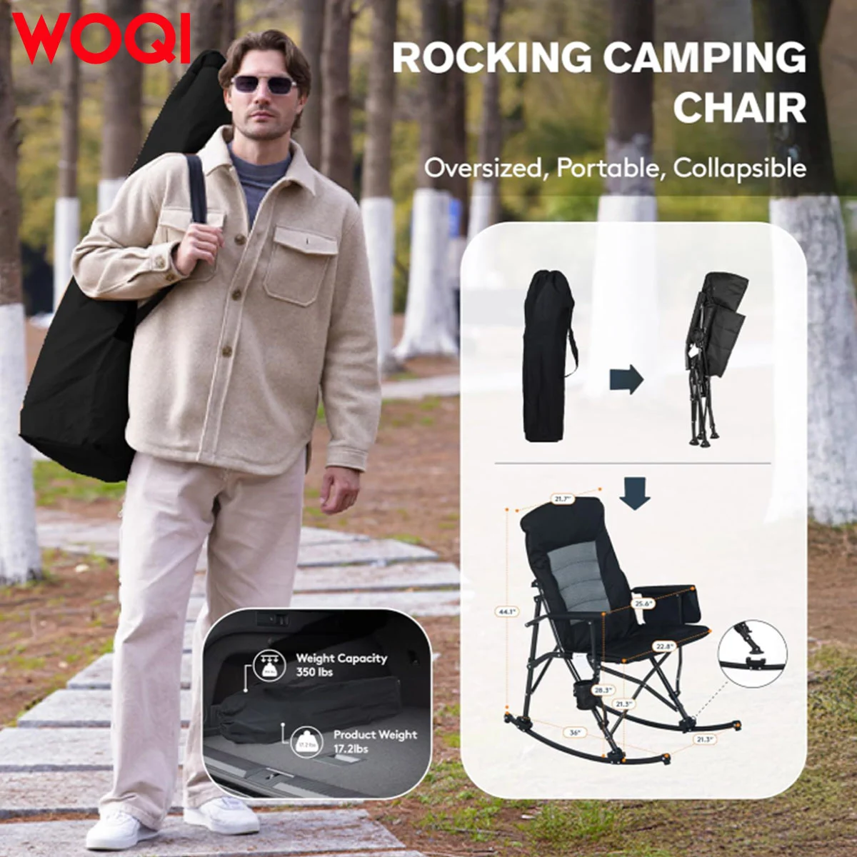 Strong and Durable Construction: Measuring 61X70X105CM, this rocking camping chair is built with a high-strength metal frame that supports up to 350 lbs, ensuring a spacious and stable seating experience.