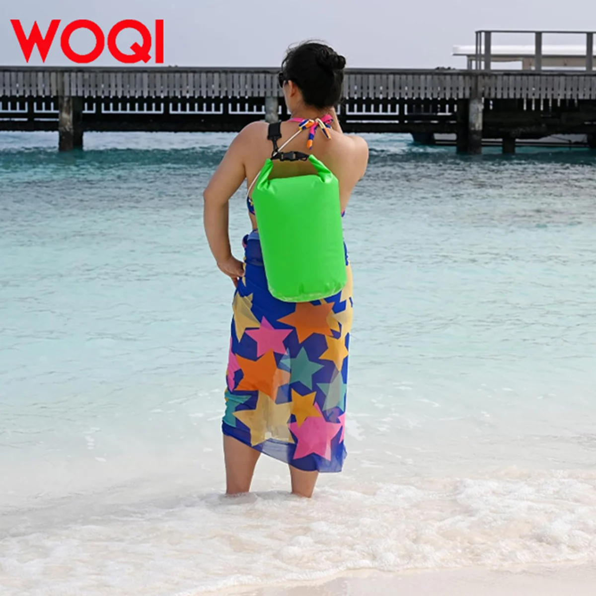 This waterproof bag is available in five sizes-2L, 5L, 10L, 15L and 20L, and eight colors-black, blue, green, orange, red, pink, yellow and dark blue.