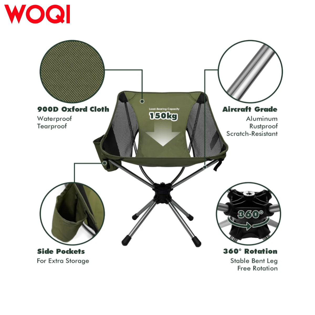 [Strong and durable] The Backpack Chair is made of aluminium tubing and can hold up to 305lbs, whether it’s uneven grass, loose sand or loose gravel, this chair will sit smoothly and securely. The swivel chair’s four legs are securely attached to the centre pivot in a criss-cross fashion, and the bottom has a non-slip finish that prevents rocking and falling, ensuring a safe and comfortable seating experience.