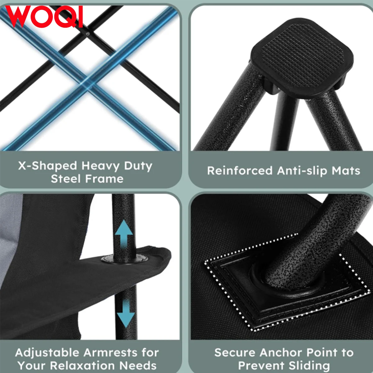 Heavy Duty & Durable – Folding camping chairs made of compact tough 600d oxford fabric with high strength and stability. Four heavy duty 22mm steel frame were added to the bottom of the chair. Sturdy steel frame construction make it can support up to 440 lbs and you’re guaranteed a long lasting chair to enjoy outdoors all year.