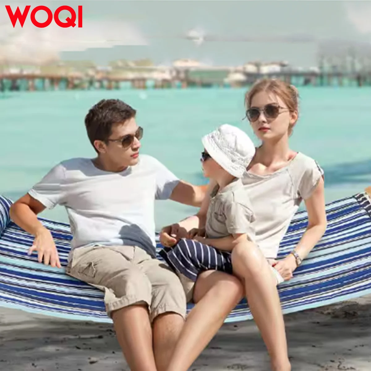 Double-sided cloth hammock: hammock is designed with double-sided cloth, one side is striped and the other side is matched with solid color. Polyester fabric has been treated with high color fastness and waterproof, so that hammocks can be used outdoors for a long time. Fashionable fabric color design and selected hardwood materials make our hammock an ideal choice for gardens, terraces and backyards.