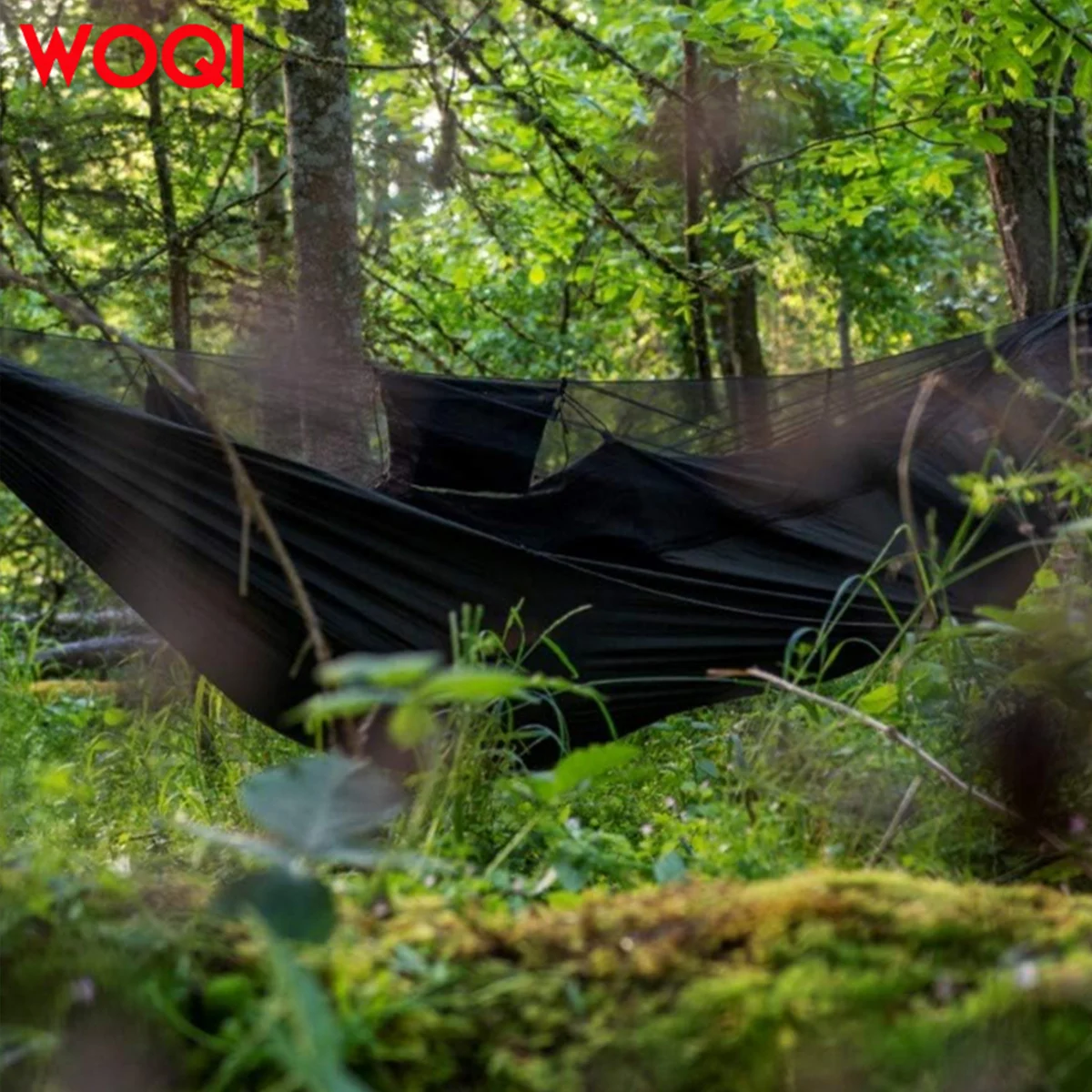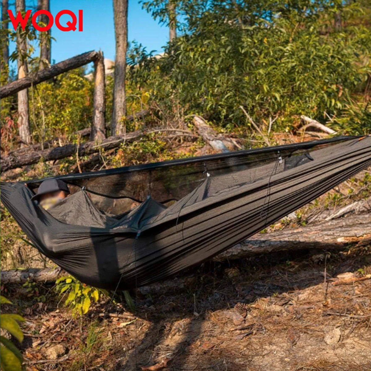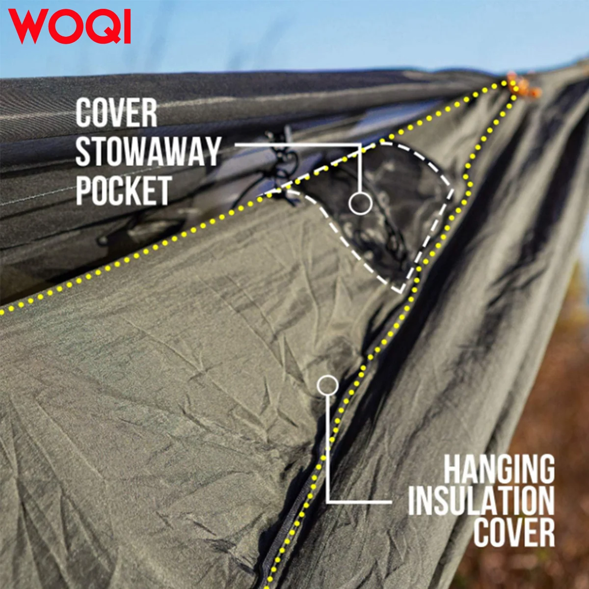 【Built-in Zipper】The built-in zipper allows you to close the top of the hammock, perfect for covering yourself with a blanket at night to prevent condensation and frost buildup in the sleeping bag. It also helps to raise the internal temperature and keep you warm. This is a unique design on the market!