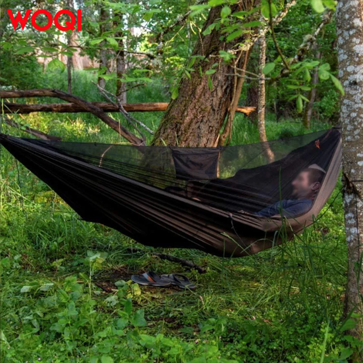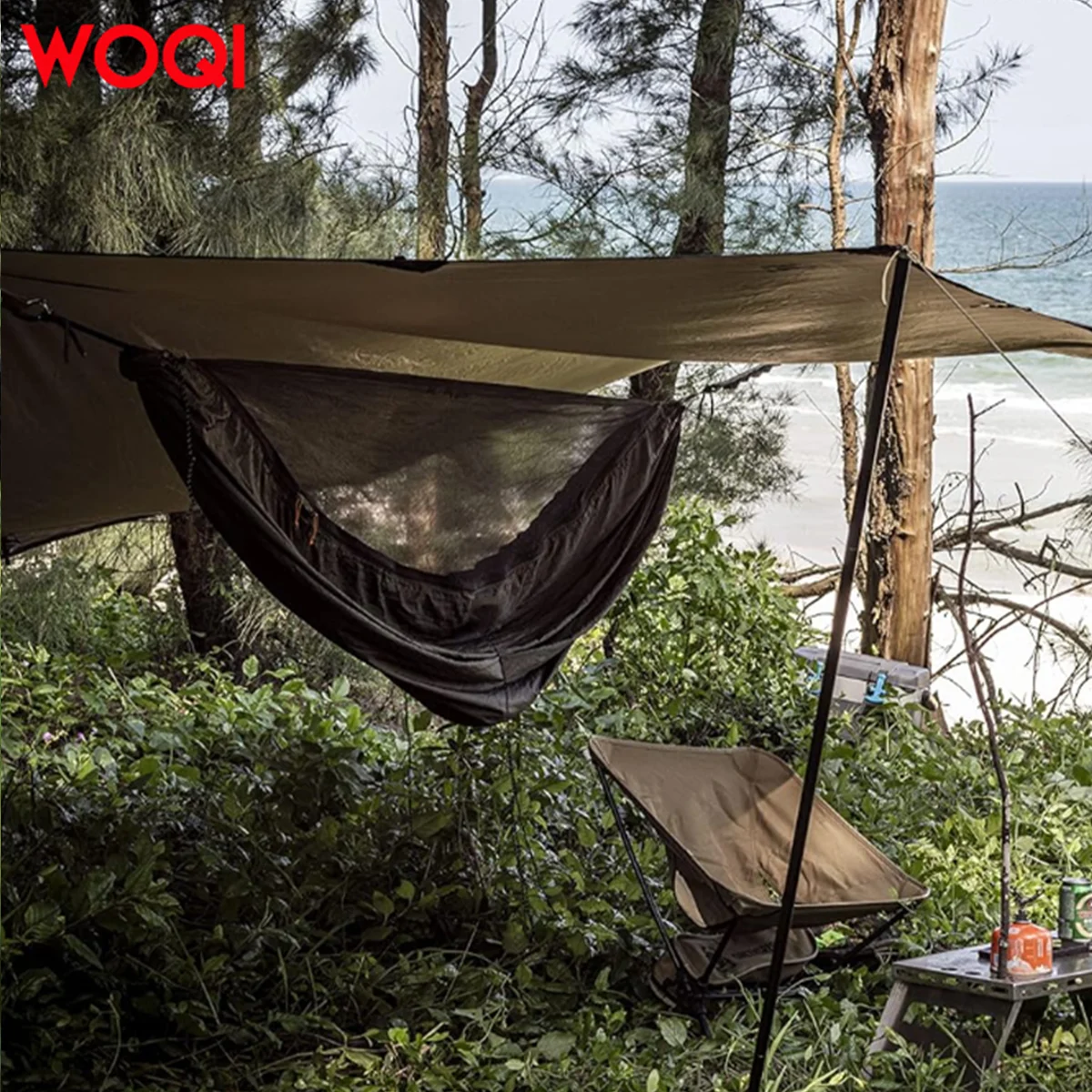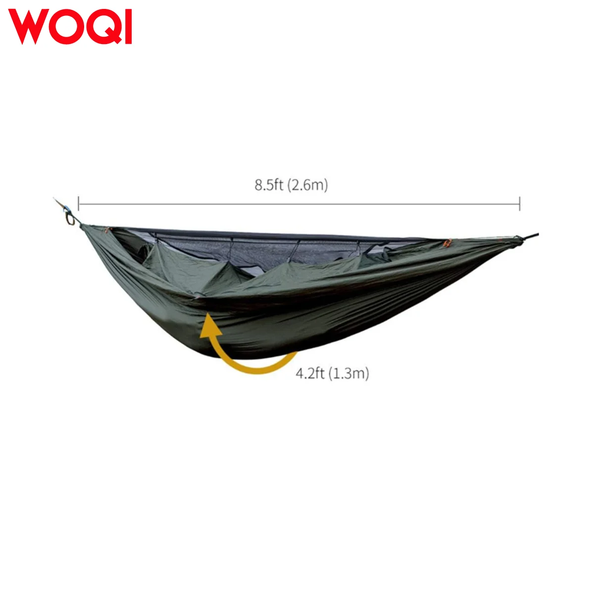 【Built-in Zipper】The built-in zipper allows you to close the top of the hammock, perfect for covering yourself with a blanket at night to prevent condensation and frost buildup in the sleeping bag. It also helps to raise the internal temperature and keep you warm. This is a unique design on the market!