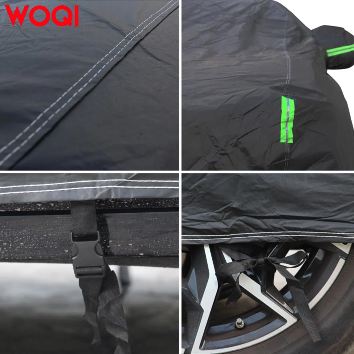 3. Windproof and tear-resistant. The edge design fits the car perfectly. There are 4 wheel straps and 1 windproof strap that go under the car.