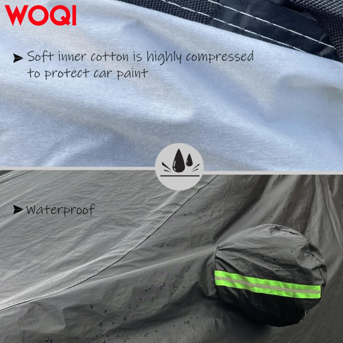 1. Durable waterproof material. The thickened fabric lined with cotton better protects the car paint, and it withstands low temperatures, snow, and frost in winter.