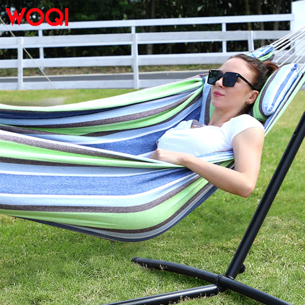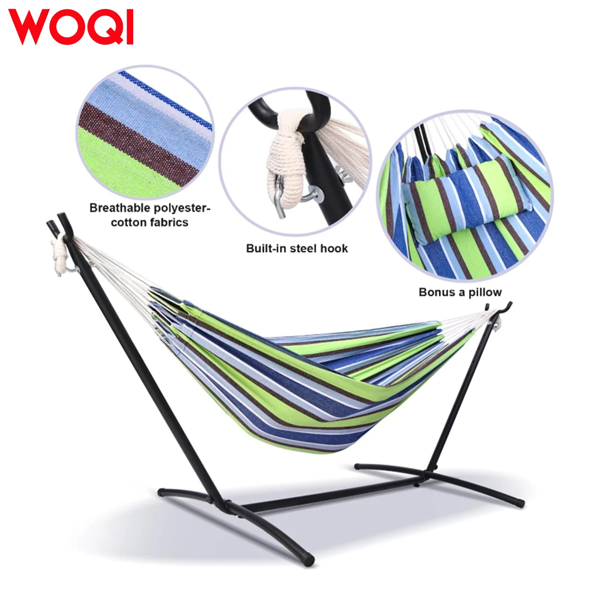 Long-Lasting: Made from tightly woven cotton-blend fabric, this hammock is weather-resistant and can be easily folded into a portable bag, allowing you to enjoy comfort anytime, anywhere!