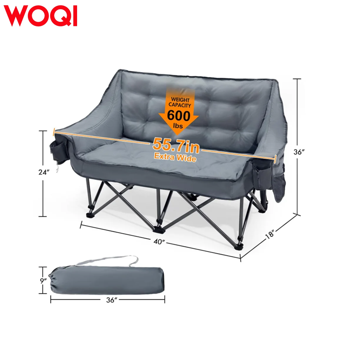 【Comfortable Loveseat Camping Chair】The double folding chair has a 18 inch height and ultra-padded 3cm thick backrest to support your shoulders to relax fully. With the overall thickened padded cushion, this camping couch can keep you cozy all the time.