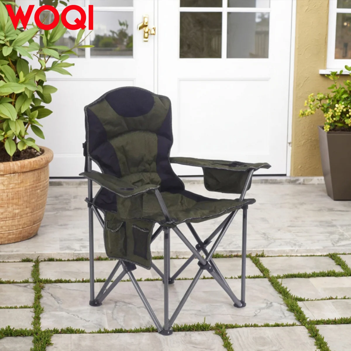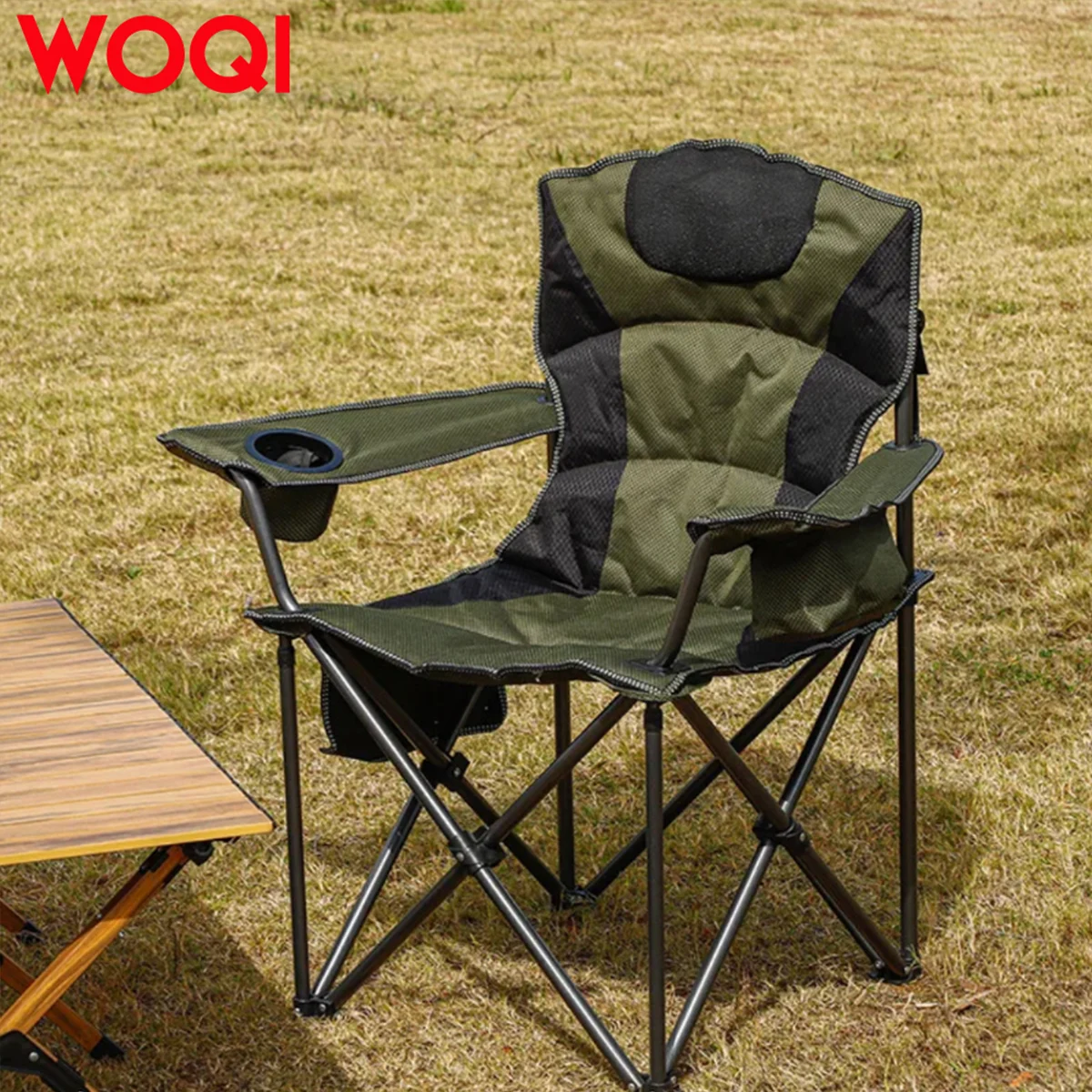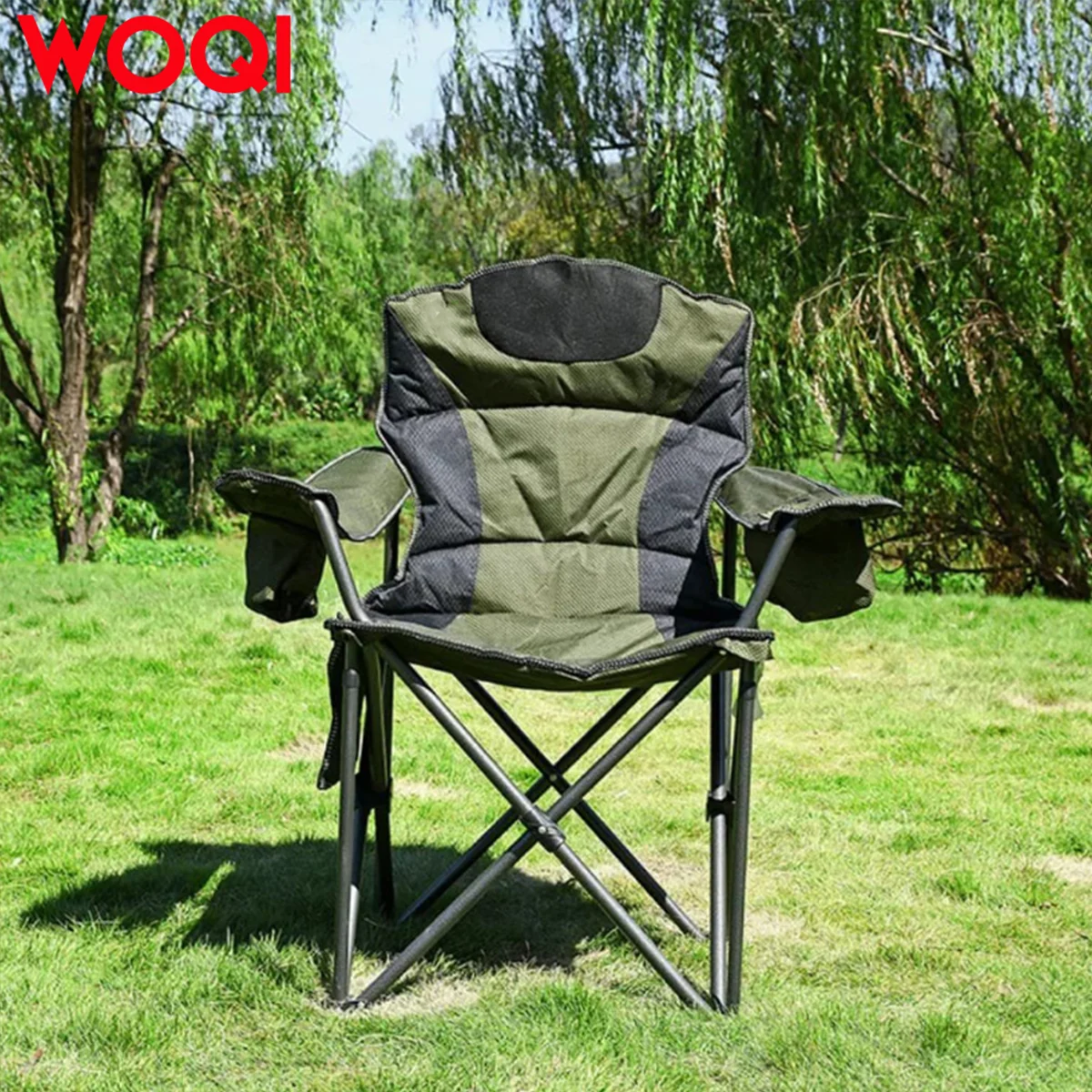【Sports Chair – Ergonomic Cushioned Design】Upgraded X-shaped steel frame eliminates wobbling and has passed multiple folding tests. Adjustable cushioned armrests and lumbar support make you feel comfortable while watching games, concerts, or hiking.