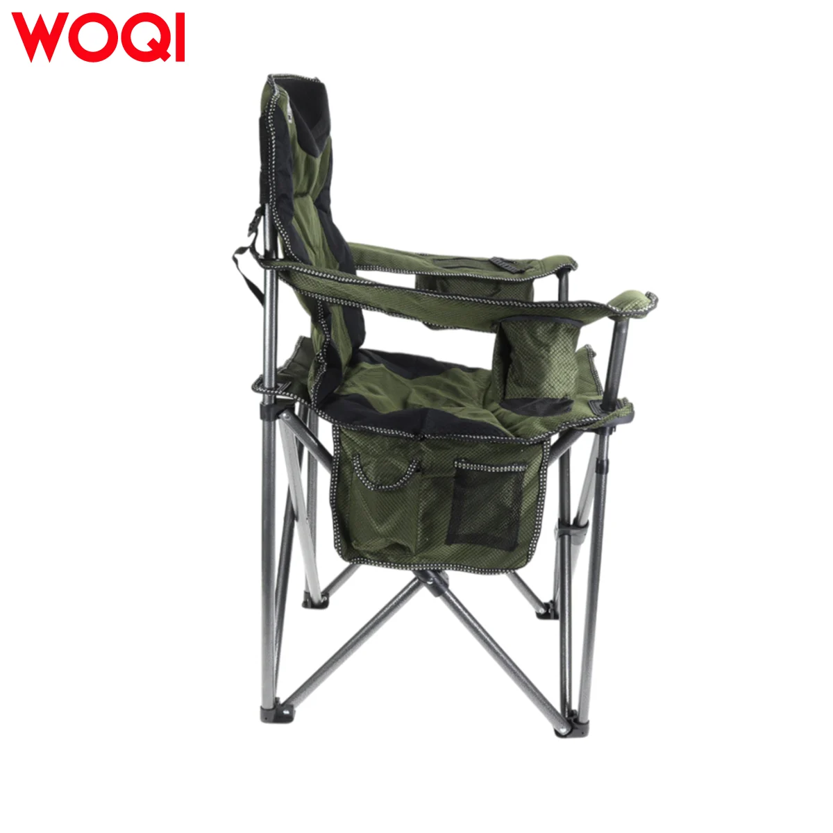 【Camping Chair – Four-in-One Storage and Cooling Function】Includes a mesh cup holder (for water cups/bottles), an oversized side storage pocket (for phones/books), an Oxford fabric cooler bag that holds 6 cans of beverages (to keep drinks cold), and a foldable carrying bag for easy transport – a must-have for camping.