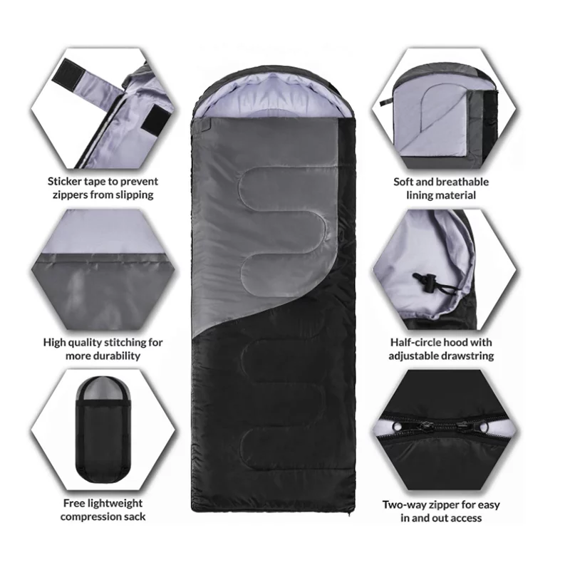 LIGHTWEIGHT, PACKABLE & EASY TO CARRY – This compact sleeping bag packs down small into the included compression sack, making it perfect for camping, hiking, and road trips. Anti-snag zippers ensure smooth, hassle-free use.