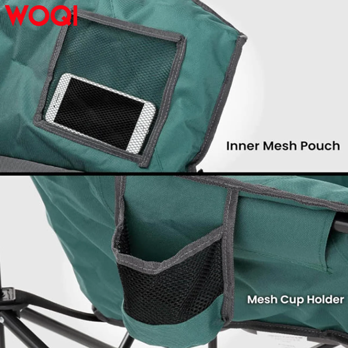 Integrated Storage: Features a convenient cup holder and an external storage pouch, allowing easy access to items like phones, bottle openers, or lighters.