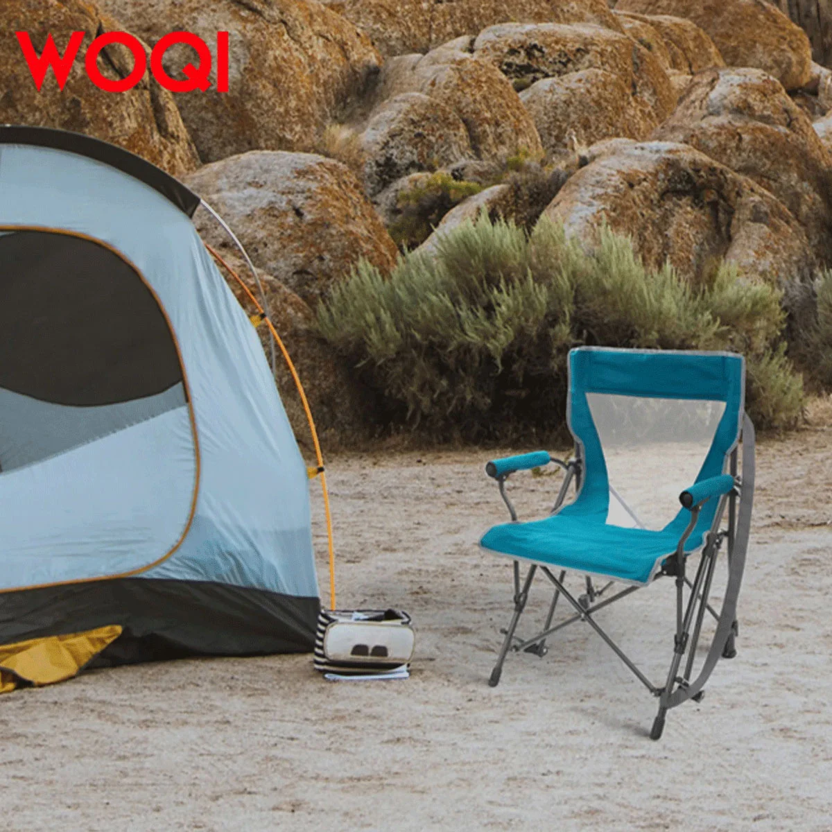 WOQI Portable soft-cushioned hard-arm outdoor rocking chair
